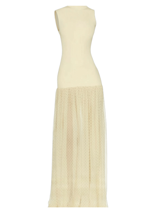 Jean Paul Gaultier Flocked Open-Back Tulle Maxi Dress