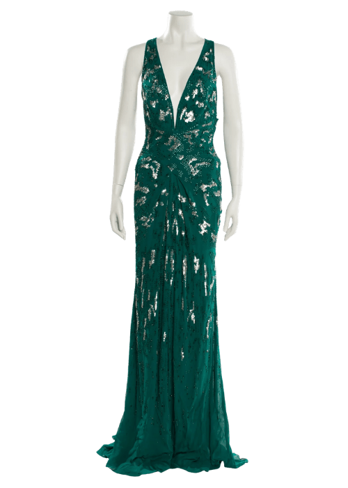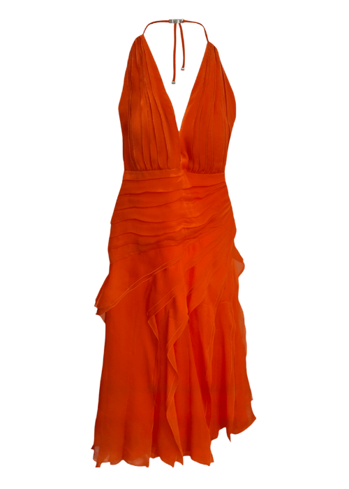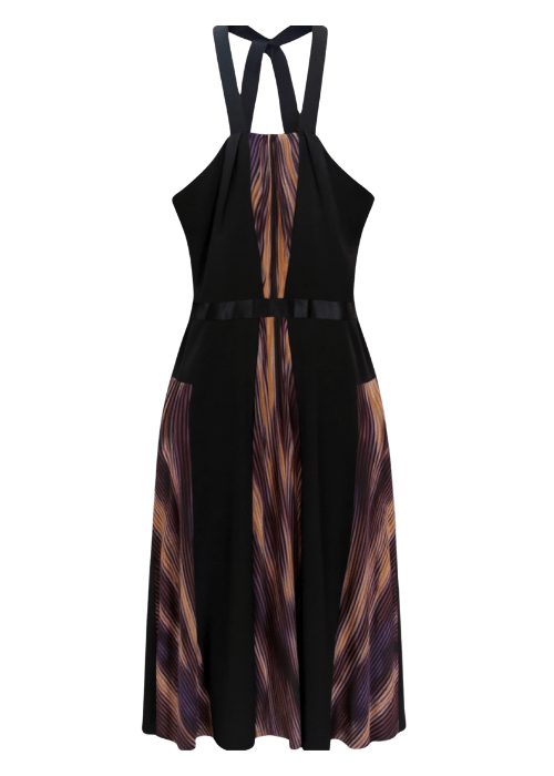 Versace Versus Black & White Silk Deep V-Neck Halter Dress