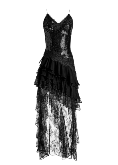Alice and Olivia Nelia Sequined High-Low Ruffled Maxi Dress