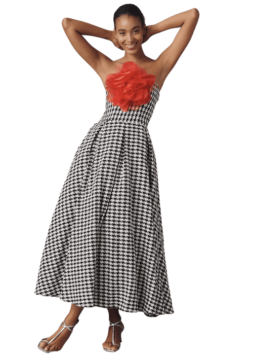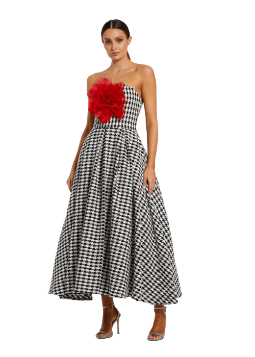 Shop – Mac Duggal Strapless 3D Flower A-Line Midi Dress