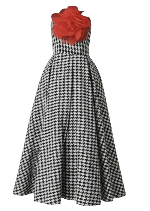 The Mac Duggal Strapless 3D Flower Bouclé A-Line Midi Dress is a romantic statement piece that blends timeless charm with modern detail. Crafted from textured bouclé, this dress features a strapless neckline adorned with delicate 3D floral appliqués, adding soft dimension and feminine flair. The A-line silhouette falls to a graceful midi length, offering a flattering fit that transitions seamlessly from daytime celebrations to evening soirées.