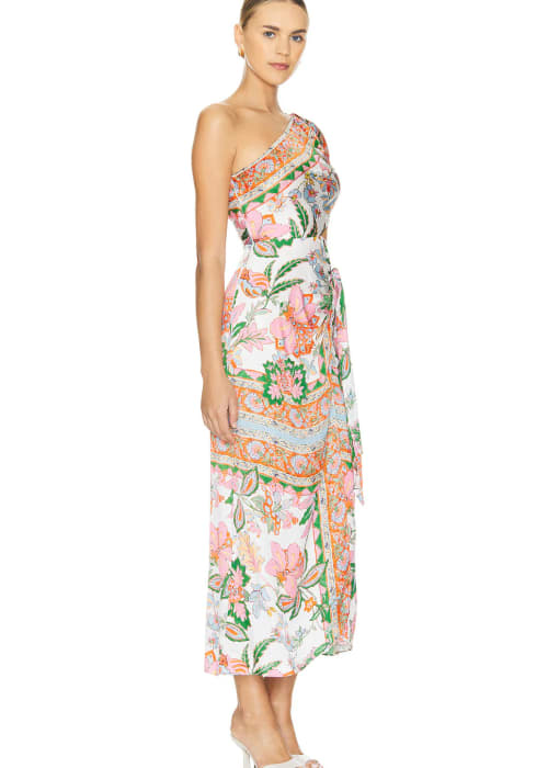Available for try on in Santa MonicaMISA Serina Dress One-Shoulder Cutout Midi