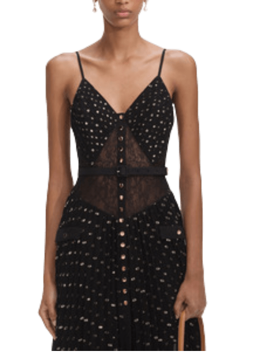Self Portrait Black and Gold Chiffon Maxi Dress