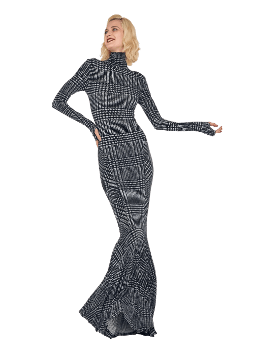 The Norma Kamali Elegant Turtle Fishtail Gown is a masterclass in sophisticated drama and modern glamour. Crafted with a figure-flattering silhouette, this gown features a high turtle neckline and a sweeping fishtail hem that moves gracefully with every step. Its sleek, minimalist design allows the silhouette to shine, making it perfect for red-carpet events, formal evenings, or statement-making occasions. Timeless and elegant, this gown blends architectural structure with fluid movement.