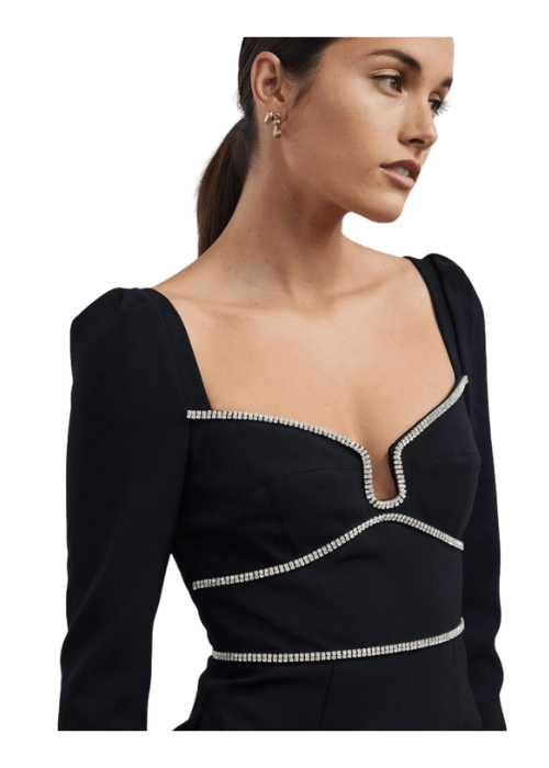 Self Portrait Black Rhinestone-Embellished Minidress