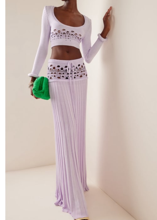 Christopher Esber's crochet-adorned skirt is spun from cotton in a dreamy lilac hue that looks so striking on it's own, but even more so with the matching crop top.